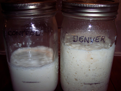 Left alone to ferment, or proof at room temperature. ↓ The Denver culture is now contaminated with whatever yeast and bacteria is piggybacking on the flour that has already proven to amenable to cultivation. We're counting on the numbers of organisms in the Denver culture are great enough to completely overwhelm or assimilate any piggybackers.